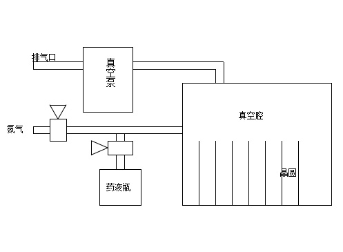 Primero, se enciende la bomba de vacío para comenzar a aspirar. Una vez que el nivel de vacío en la cámara alcanza el valor establecido (este valor se puede establecer cambiando el valor P2 en el vacuómetro, consulte el manual del vacuómetro), se introduce nitrógeno. Después de alcanzar el nivel de vacío establecido (este valor se puede establecer cambiando el valor P1 en el vacuómetro), se repite el proceso de aspiración e introducción de nitrógeno. Después de alcanzar el número establecido de introducciones de nitrógeno, se inicia nuevamente el vacío, seguido de la introducción de la solución química. Transcurrido el tiempo establecido, se detiene la introducción de la solución química y comienza la fase de retención. Después del tiempo de retención establecido, el vacío y la introducción de nitrógeno comienzan nuevamente, durante el número establecido de ciclos. Una vez que el sistema completa automáticamente el proceso, se emite una alarma audible y visual, indicando que las obleas están listas para ser retiradas.
